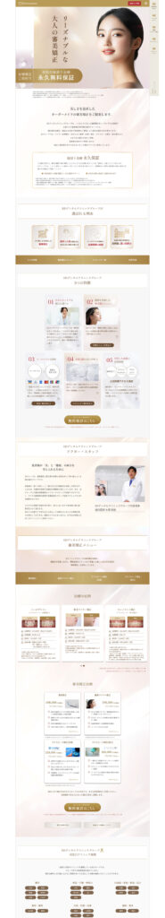 審美歯科・矯正歯科を専門とするクリニックのコーポレートサイトを制作しました。白とゴールドを基調とした上品なデザインで、高品質な治療を提供するクリニックのイメージを表現しています。