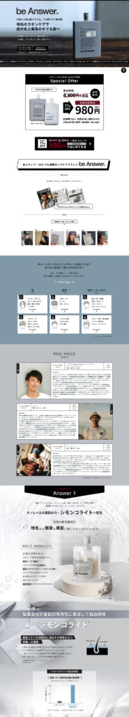 商品パッケージと有効成分を目立つ位置に配置し、どのような症状に効果があるかを分かりやすく説明。臨床データやお客様の声を掲載し、信頼性を担保しました。購入先への誘導ボタンを複数箇所に設置し、コンバージョンを促進する設計としています。