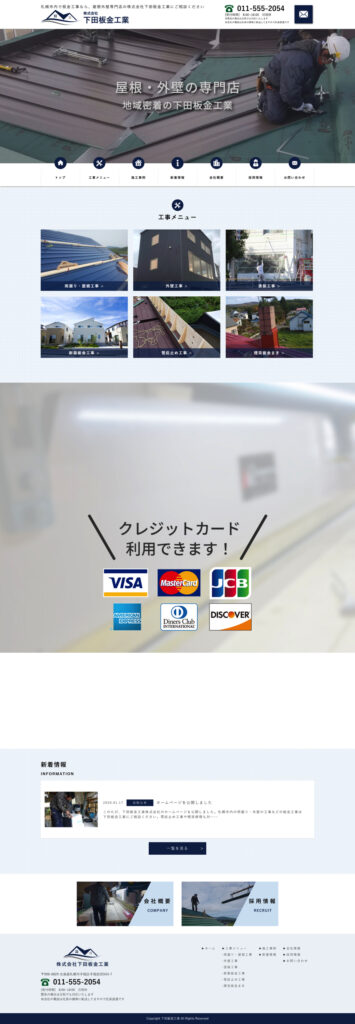 板金工事を専門とする会社のコーポレートサイトを制作しました。職人の技術力と信頼性を表現するデザインとしています。